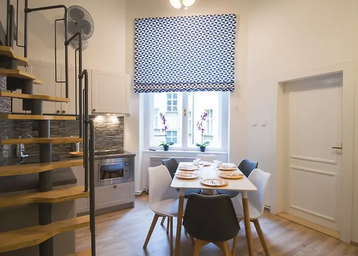 Für Selbstversorger ist eine Küchenzeile mit einer Mikrowelle, einem Wasserkocher und einer Waschmaschine vorgesehen. Das Restaurant V KolkovnE, das Gerichte der tschechischen Küche anbietet, liegt etwa 5 Fußminuten von diesem Apartment entfernt. Auch die U-Bahn-Station Altstadt ist 5 Minuten Fußweg entfernt. Den Gästen stehen ein Whirlpool und ein Flachbild-Sat-TV zur Verfügung, um einen unvergesslichen Aufenthalt zu gewährleisten.